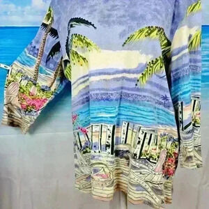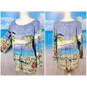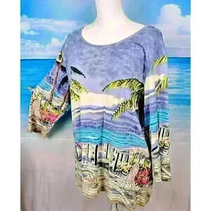 BLAIR Beach PRINT Travel Shirt TUNIC Top 3/4 Sleeve Lightweight STRETCH size XL