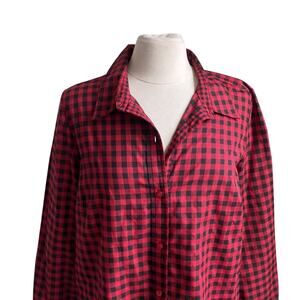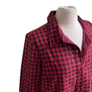BLAIR Buffalo Plaid Button Down Shirt Womens Sz Medium Red Black Grunge Campcore