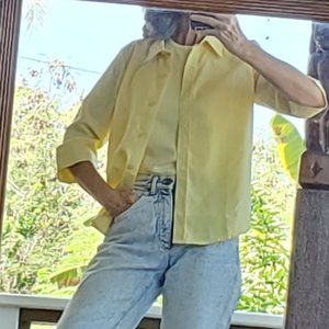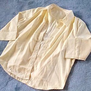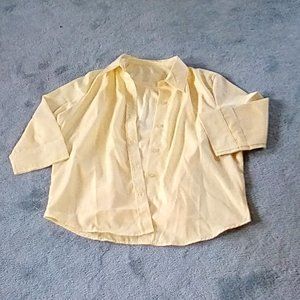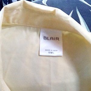 The button up is Blair's popular Fiesta shirt. A no iron easy care shirt featuring 3/4 length sleeves, faux cuffs, & shirttail hem. Hits at mid hip, approximately 27"L