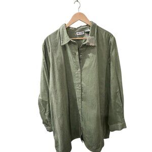 BLAIR Women's Button Down Green Corduroy Shirt | Size 2XL | 100% Cotton | NWOT