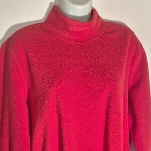 Blair pretty red fleece sweater/jacket, turtleneck, in size Large 100% Polyester. Super soft in excellent condition. shoulders~19" Measured across the front laying flat Bust~25" Across the front~ Pit to Pit Length~26" From top of shoulder to bottom hem 6