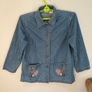 BLAIR vintage animal theme embroidered denim shirt novelty print plus size M.