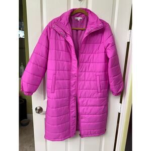 BLAKELEY Women’s Cozy Up Long Puffer Jacket In Hot Pink fuchsia $99 S/M NEW duster duster length fuchsia barbie, preppy, soft, winter, warm clothes, trendy, bright colors, girly, fairy, princess,