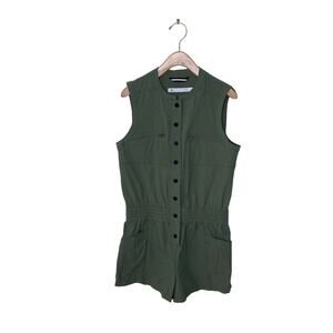BLANC NOIR Caravan Short Sleeve Button Up Romper Army Green Size Small