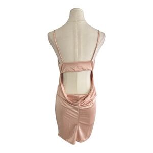 BLANC Nude Pink Slip Dress Low Cut Back V Neck Bodycon Size S Party Date Night