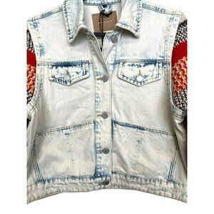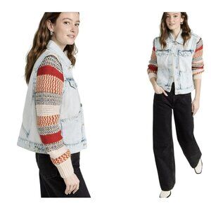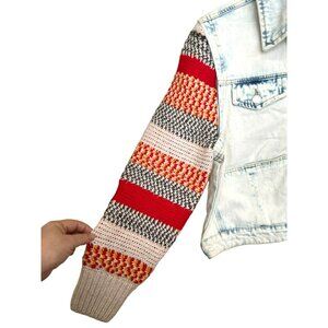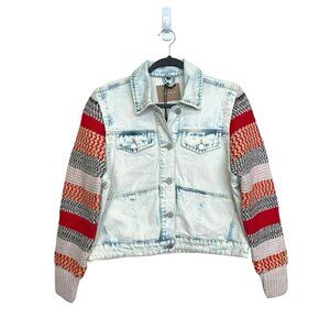 BLANK NYC $198 Happy Promises Striped Knit Denim Trucker Jacket NWT Small