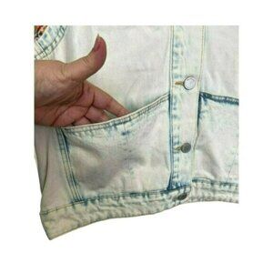 BLANK NYC $198 Large Happy Promises Striped Knit Denim Trucker Jacket NWT