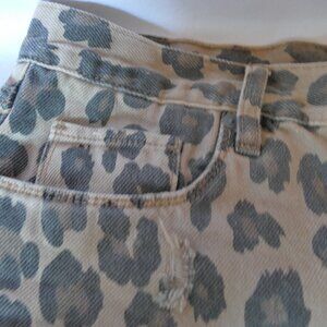 Size 27 Denim Leopard Print Distressed Jean Shorts