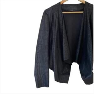 BLANK NYC Black Crocodile Faux Leather Suede Drape Front Jacket Size S