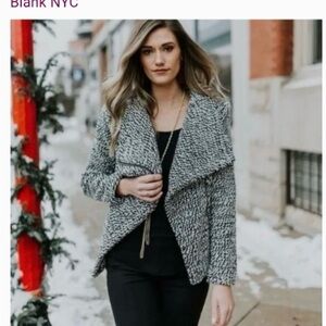 BLANK NYC Black + White "Friend Zone" Knit Wool-Blend Moto Jacket NWT Size Large
