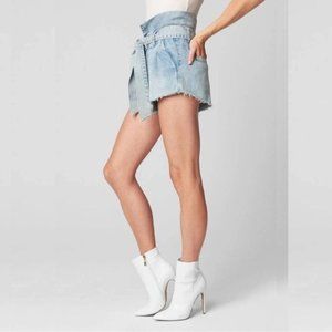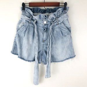 BLANK NYC Caribbean High Rise Raw Hem Paperbag Self-Belt Denim Shorts Sz 28