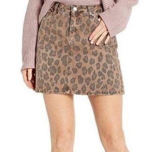 BLANK NYC Catwalk Leopard Print Denim Mini Skirt