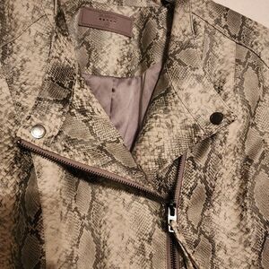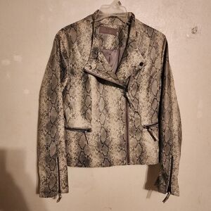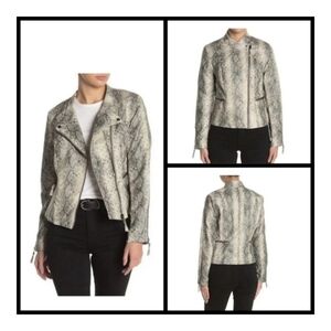 BLANK NYC Faux Leather Snakeskin Print Moto Jacket Full Zip Gray Size M