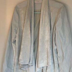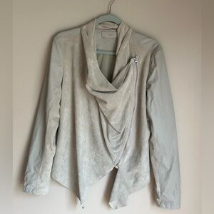 BLANK NYC Faux Suede & Leather Moto Biker Jacket Asymmetrical Zip cowl drape Lg
