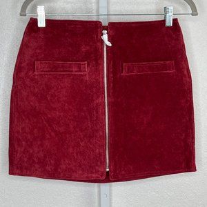 BLANK NYC Fire Away Crimson Suede Mini Skirt Full front zipper Front Pockets 27