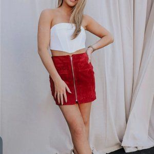 BLANK NYC Fire Away Crimson Suede Mini Skirt Full front zipper & Pockets 27 NWT