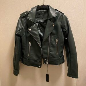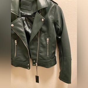 BLANK NYC Green Faux Leather Moto Jacket NEW