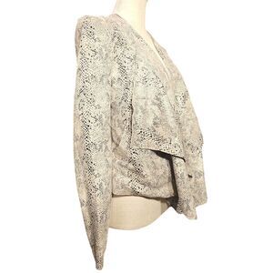 BLANK NYC Jacket Sz Small Faux Animal Snake Print Beige Black Drape Front