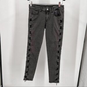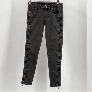 BLANK NYC Lace Up Black Skinny Jeans Tie Side 90s Streetwear Edgy Size 27 Bag832
