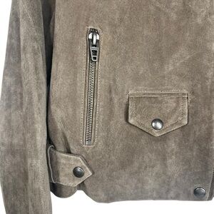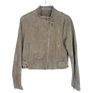 BLANK NYC Light Taupe Suede Bomber Biker Jacket with silver zippers Large