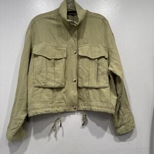 BLANK NYC Linen Blend Utility Jacket Size Small Green Cropped Oversized Fit Boho
