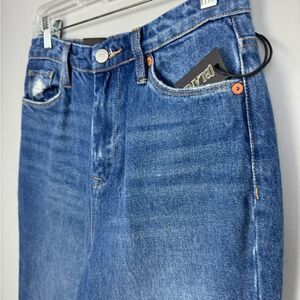 Nice high rise jeans by Blank NYC! Zipper and button fly closure. Pockets and belt loops. Slim straight fit with slightly flared silhouette and split hem detail. Brand NWT. Women’s size 27 (4).