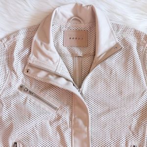 BLANK NYC Perforated Moto Cream Faux Leather Jacket