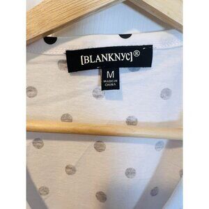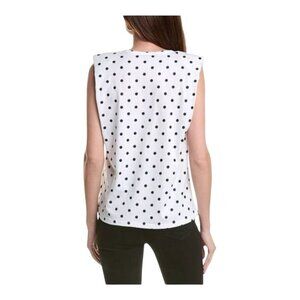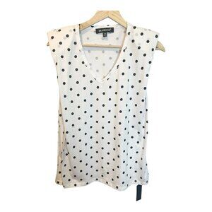 BLANK NYC Polka Dot Padded Shoulder Medium V-Neck Top White/Black Sleeveless NWT
