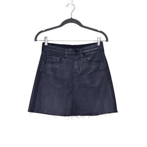 BLANK NYC Coated Spartacus Black Denim Mini Skirt 5-Pocket Raw Hem Women's 26