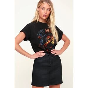 BLANK NYC Spartacus Coated Denim Mini Skirt Black 5-Pocket Raw Hem Women's 26