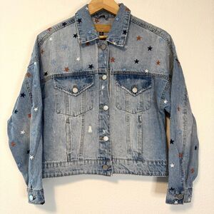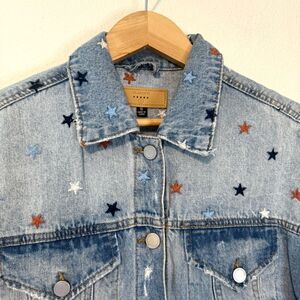BLANK NYC Star Embroidered Born in USA Denim Jacket Size Small