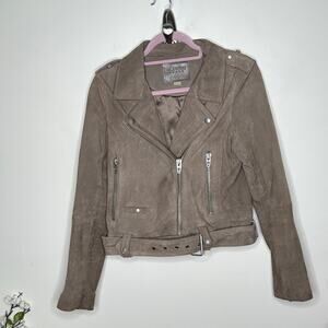 BLANK NYC Suede Leather Moto Jacket Sand Stoner Tan Natural