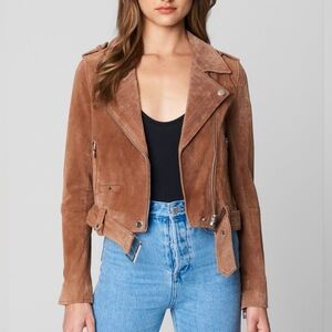 BLANK NYC Suede Leather Moto Jacket in Coffee Bean Size Small