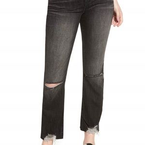 BLANK NYC The Varick Barracuda Black Distressed Cropped Kick Flare Raw Hem Denim Jeans Womens Size 31 NWT