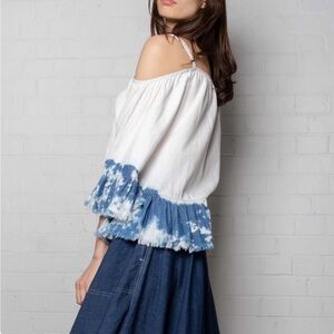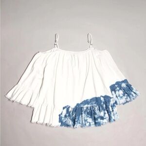 BLANK NYC WHITE BLUE TIE-DYE OFF THE SHOULDER TOP XS NWT