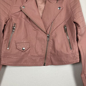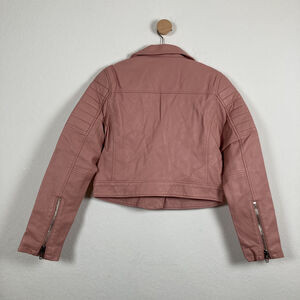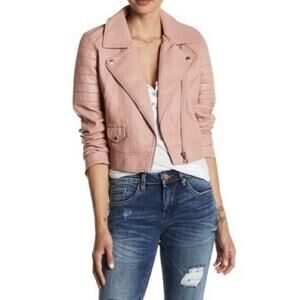 BLANK NYC WOMEN'S PRETTY IN PINK LONG SLEEVE FAUX LEATHER MOTO JACKET SMALL