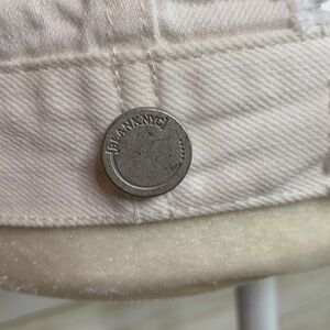 Blank NYC white denim jean jacket. Traditional styling with distressing and fringed details. Button front. Two breast pockets and two inseam pockets. Womens size Small. New with tags, never worn.