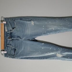 BLANK NYC jeans women's size 2 sz 26 light blue skinny classic ripped destroyed white splatter circles dots frayed ripped ankle