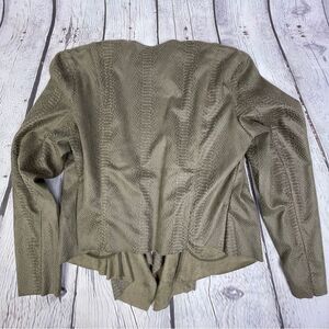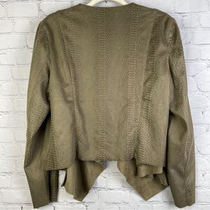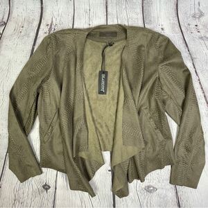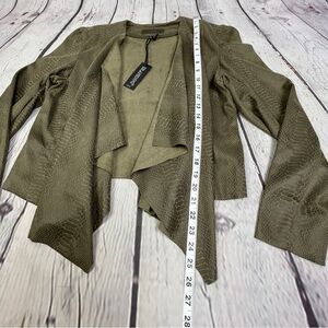 BLANK NYC olive green faux suede snake print open front drape jacket NWT, size L