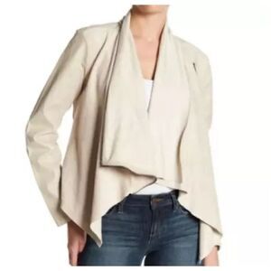 Blank NYC Ivory Drape Front Mixed Media Moto Jacket
