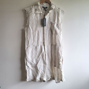 BLANK NYC,Changing Lanes Striped Linen Romper, Light Tan/Cream, Size Large -NWT
