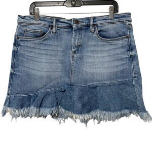 BLANK NYC Frayed Asymmetrical Ruffle Hem Denim Mini Skirt 31