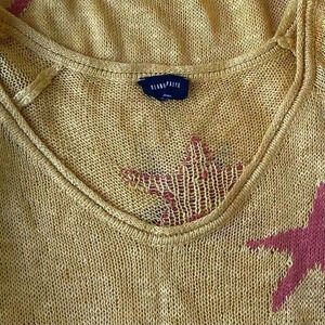 BLANK PAIGE Knit Stars Sweater Scoopneck Yellow Loose Fit Lightweight Pullover S
