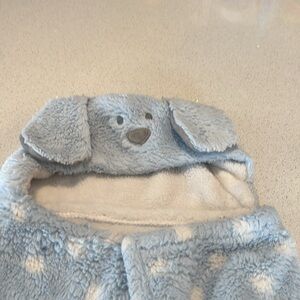BLANKETS & BEYOND blue White Dots Hooded long ears dog BABY BLANKET Hood Plush