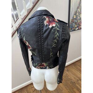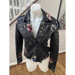 BLANKNYC Blank NYC As You Wish Floral Embroidered Vegan Leather Moto Jacket Size XS