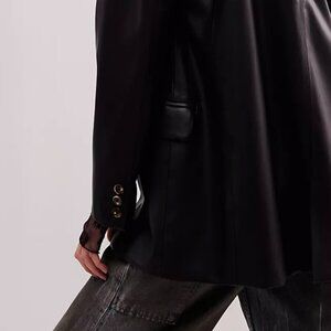 So chic and sophisticated this menswear-inspired blazer is featured in a soft vegan leather and oversized fit with a lapel neckline and pockets at the front.