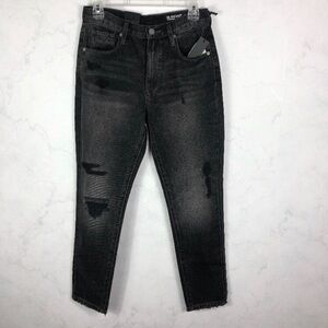 BLANK NYC Black Distressed Ripped High Rise Tapered Jeans. The Rivington Style. Raw Frayed Bottom. No stains or rips. New with tags. Cute & Comfy.