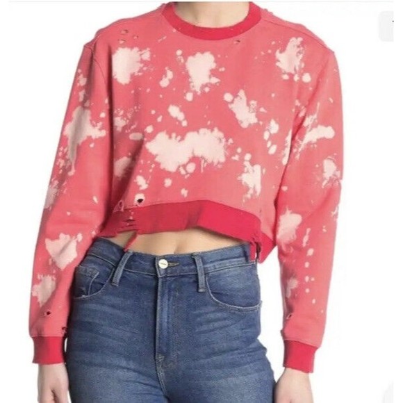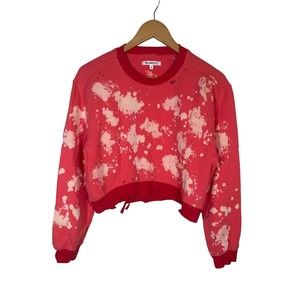 BLANKNYC Bleached Crop Sweatshirt Women Size Medium Coral Distressed Destroyed