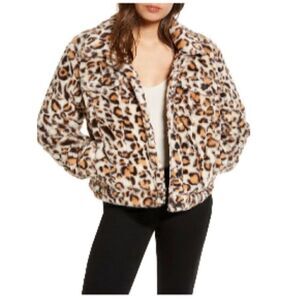 BLANKNYC Cozy Teddy Faux Fur Shearling Trucker Jacket - Leopard