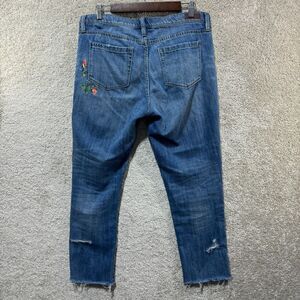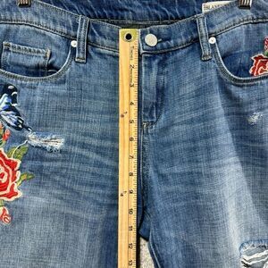 BLANKNYC Crop Girlfriend Jeans Women's 28 Blue Rose Embroidered Distressed Denim